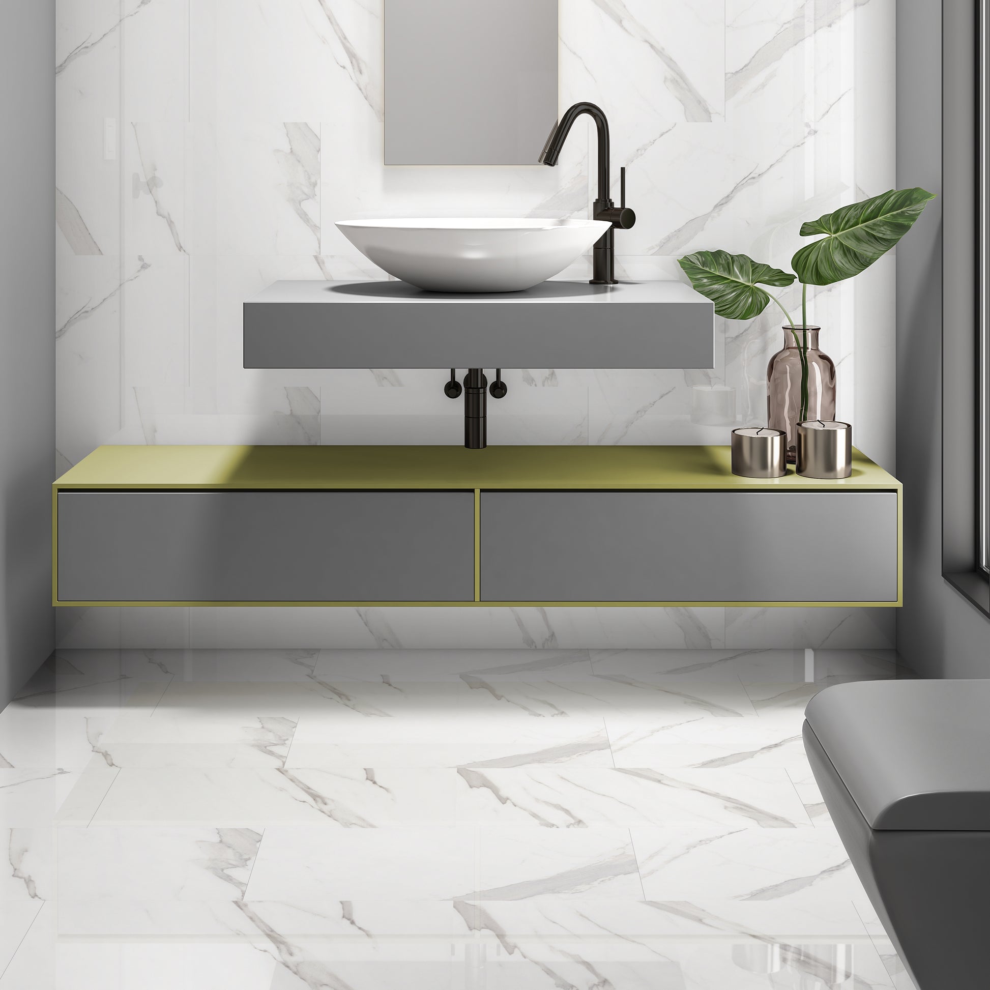 20 unique faces, offering natural variation from piece to piece. This creates a more authentic marble effect and adds visual depth across both walls and floors.