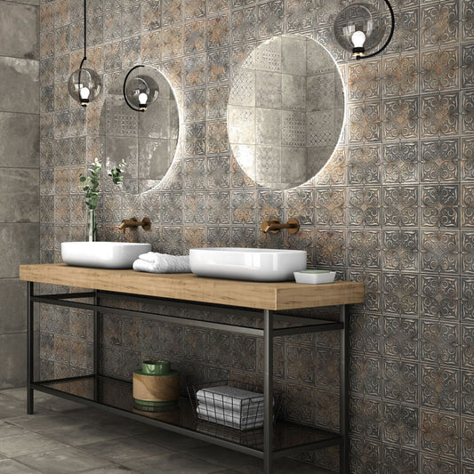 Bronze & Aged Metal Tiles – Perfect for moody, atmospheric schemes