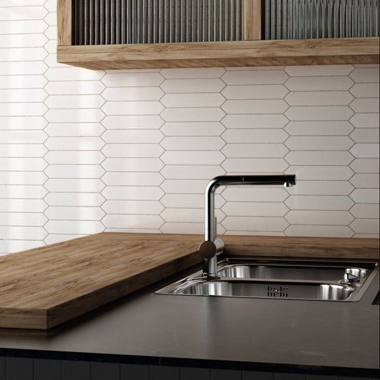 25 x 5 cm Delilah White Wall Tile Regular price £44.95 /m²Regular price £44.95 /m² £44.95 /m² Sale priceUnit price / per -
