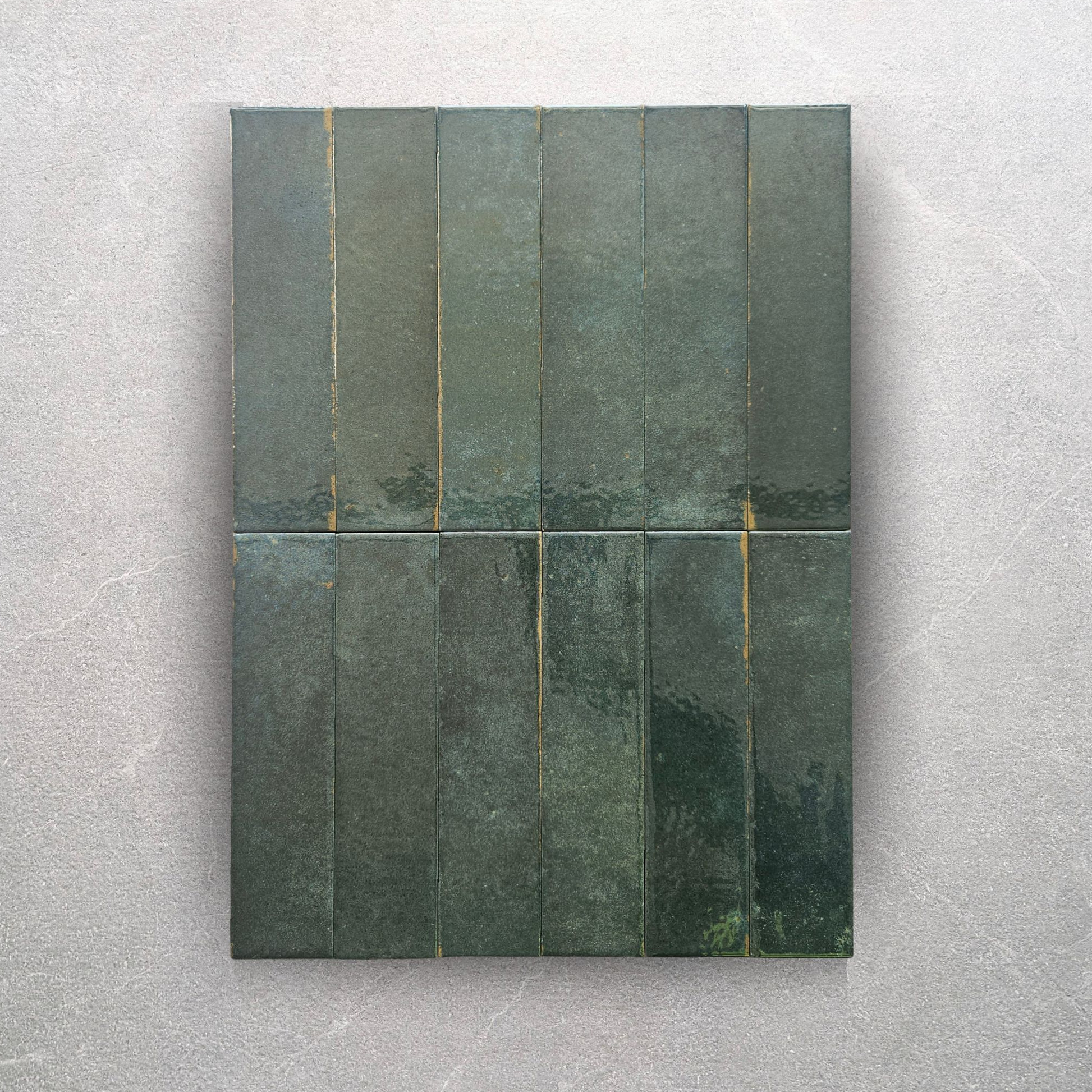 Size: 6 x 25 cmRealm Emerald Green Slim Brick Wall Tile - SAMPLE